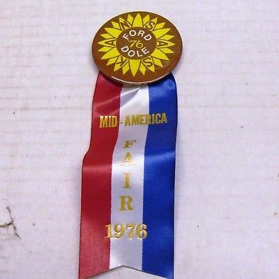 Title (ebay affiliate link): 1976 KANSAS MID AMERICA FAIR FORD DOLE PRES.CAMPAIGN PIN ON RW&B SILK RIBBON
