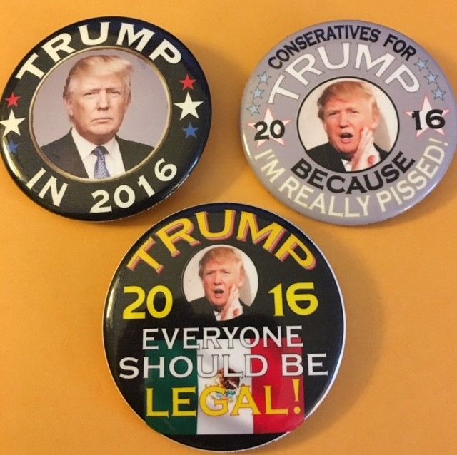 Title (ebay affiliate link): Three 2 1/4" Guardfrog Pro-Trump 2016 Political Campaign Pin Buttons