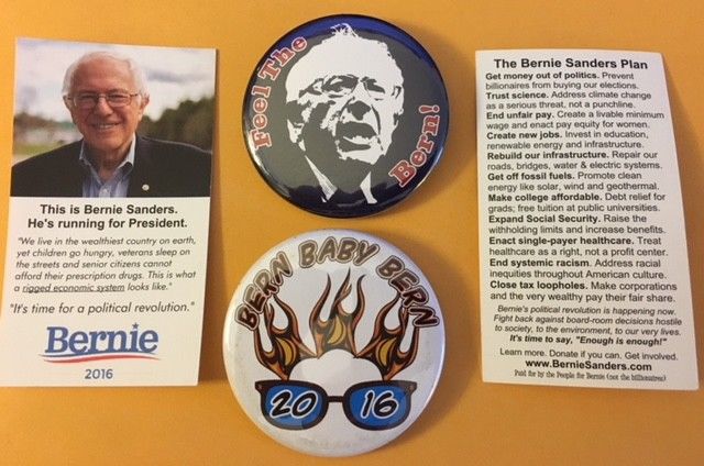 Title (ebay affiliate link): Two 2 1/4" Bernie Sanders 2016 Campaign Pin Buttons and Two Campaign Cards
