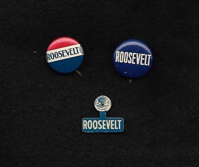 Title (ebay affiliate link): 3 original FDR Franklin D Roosevelt buttons from the 1940s