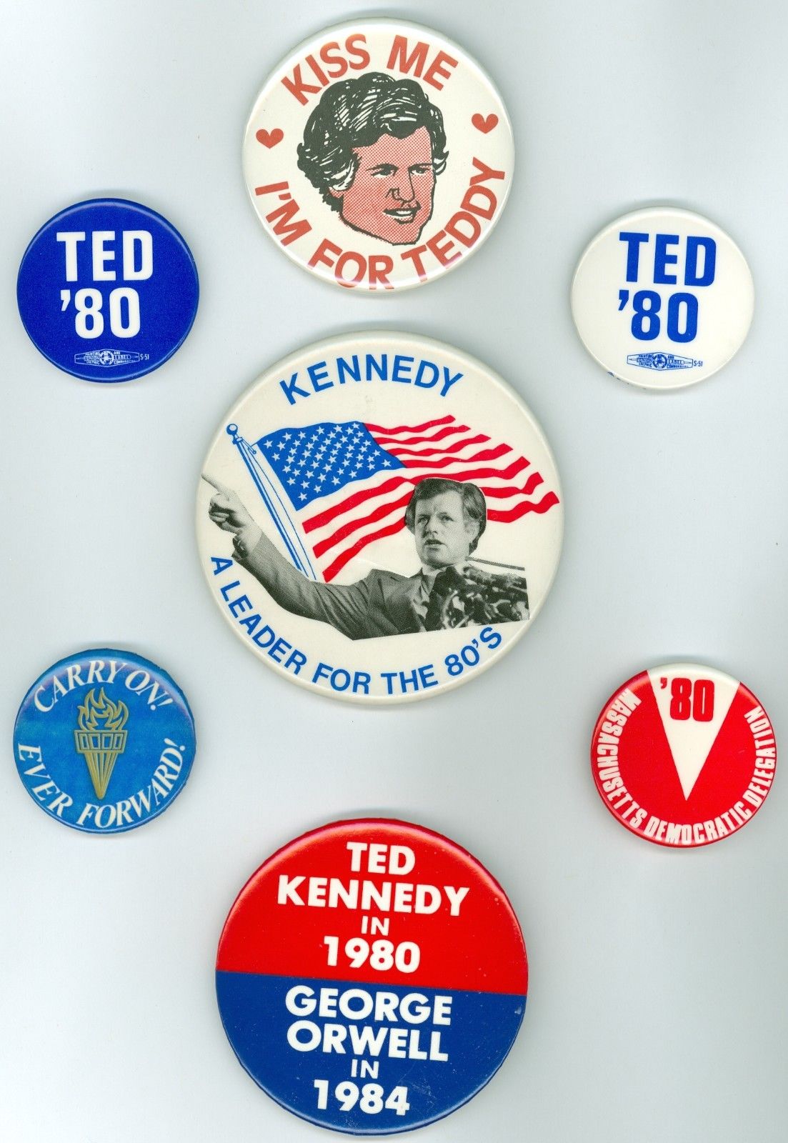 7 Vintage 1980 Ted Kennedy Presidential Campaign Pinback Buttons Carry On