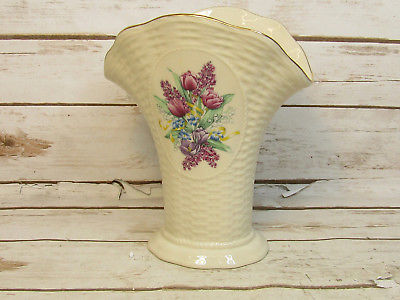 Title (ebay affiliate link): Lenox Basketweave Porcelain Vase Tulips Spring Bouquet Gold Trim