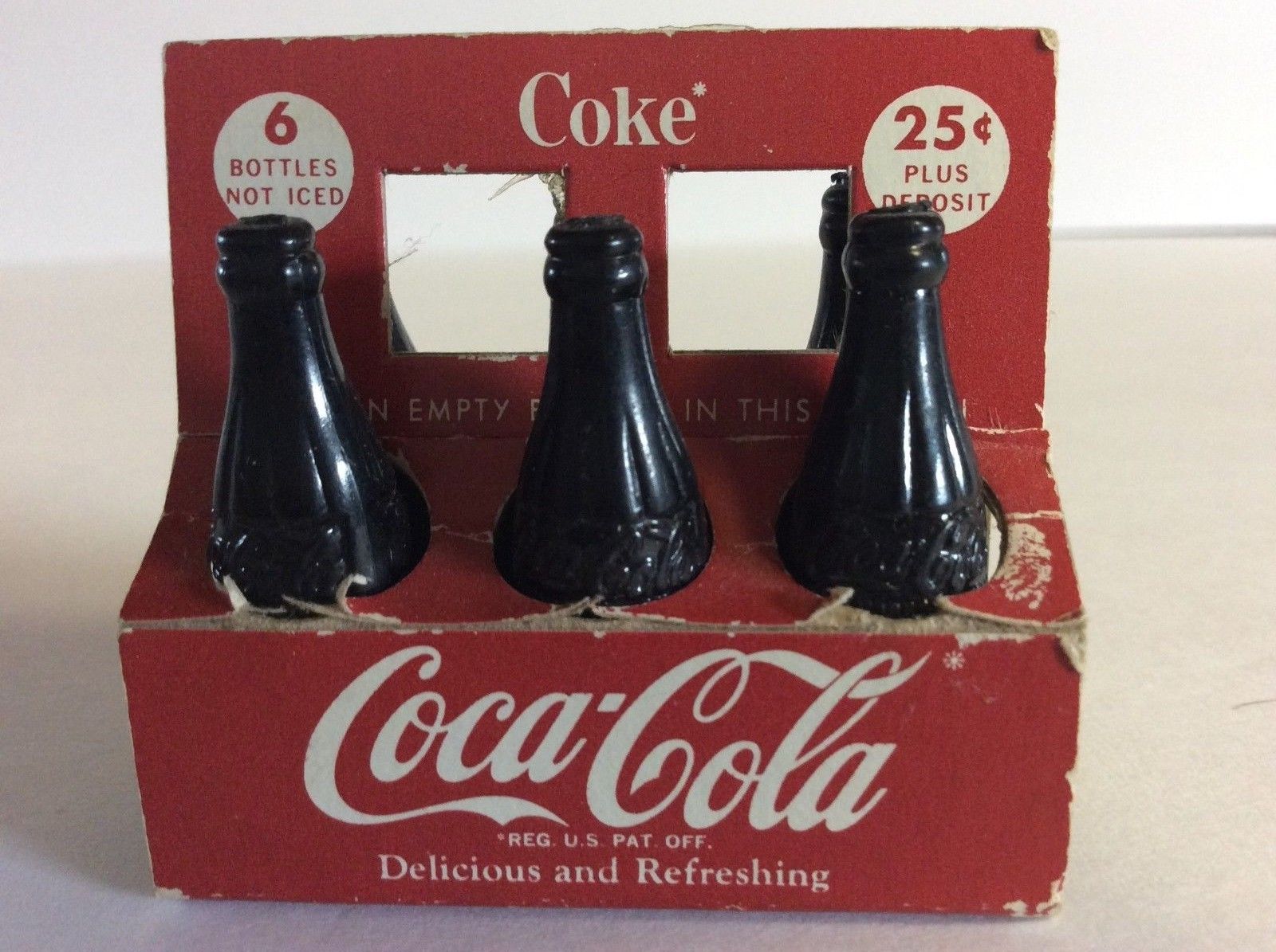 Title (ebay affiliate link): Antique Coca Cola Miniature 6 PK Carton Bottles 25 Cents