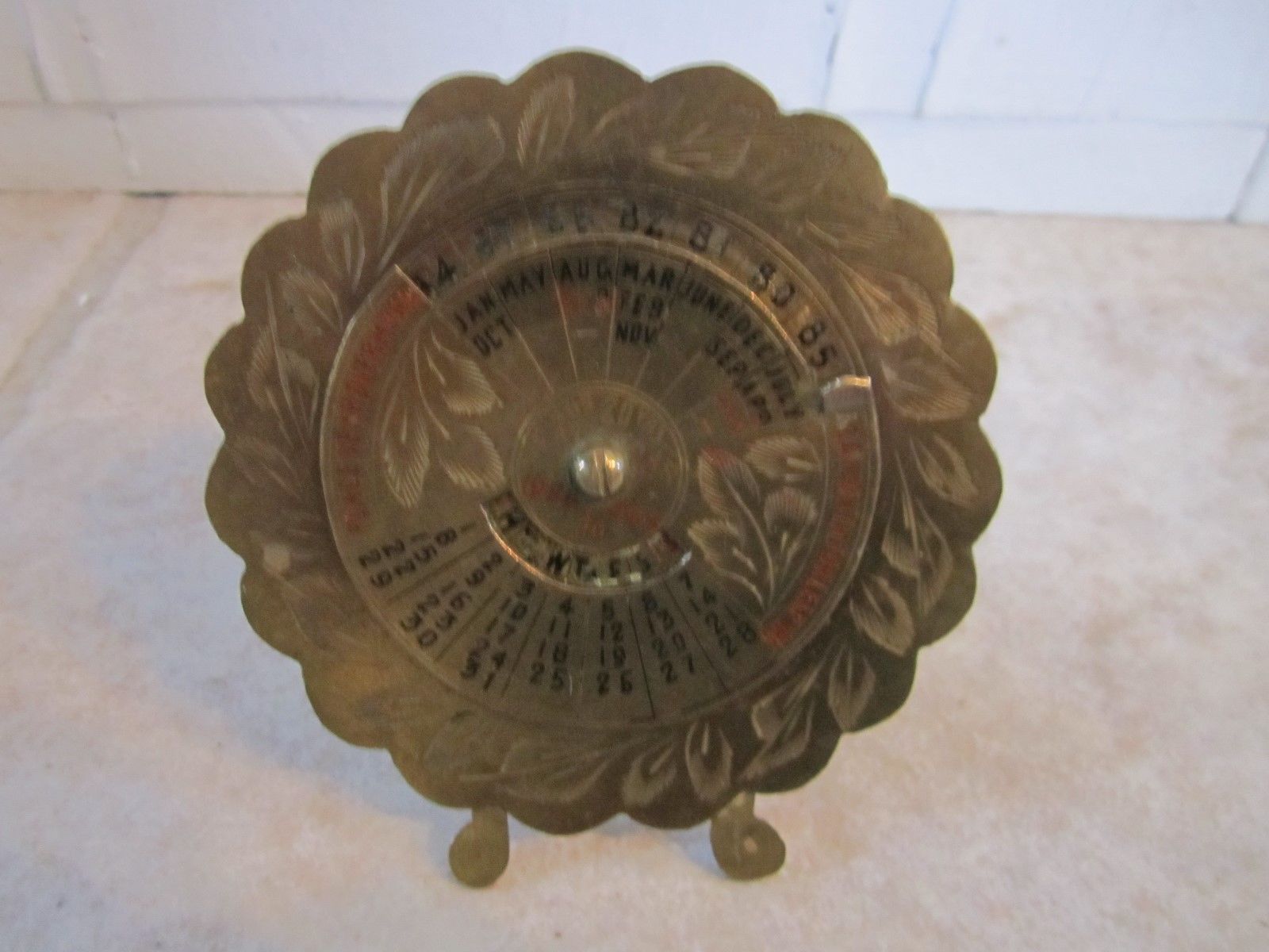 Old Brass Circular Dial Ornate 20 Year Desk Calendar!!!