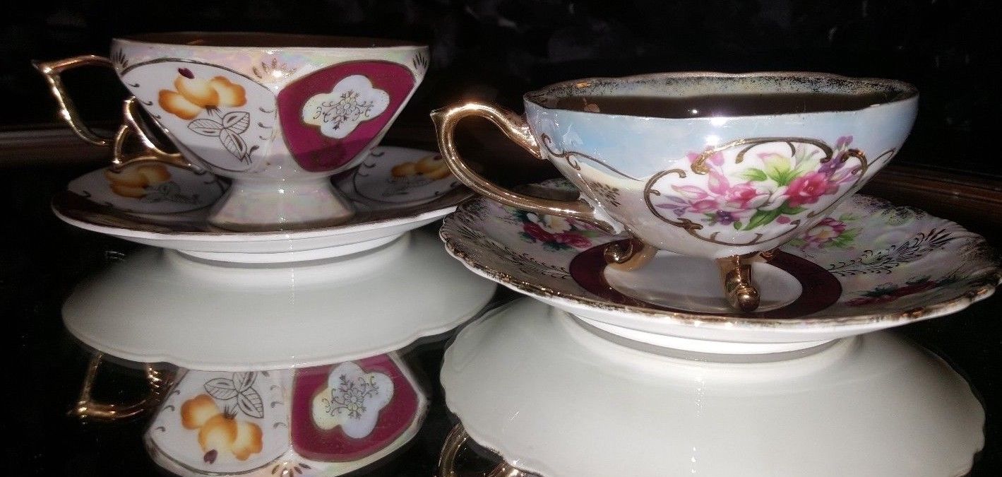 Title (ebay affiliate link): ANTIQUE CHINA FOOTED TEACUP SAUCER SET - LOT OF 2 HAND PAINTED PORCELAIN - JAPAN