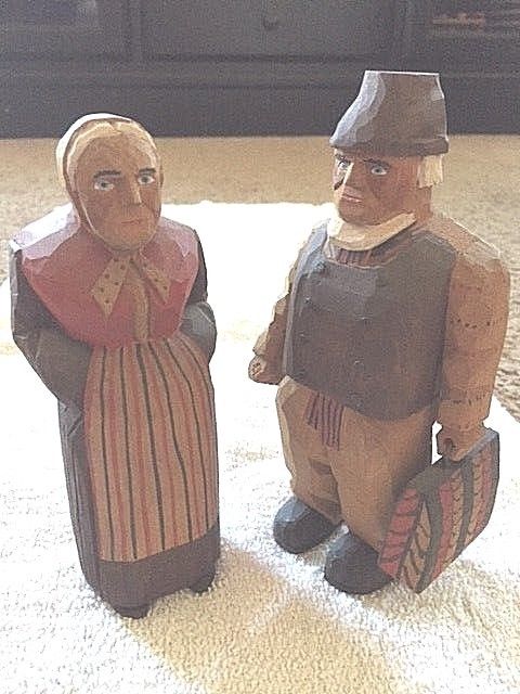 2 Folk Art Figural Wood Carvings by Swedish American Axel Peterson