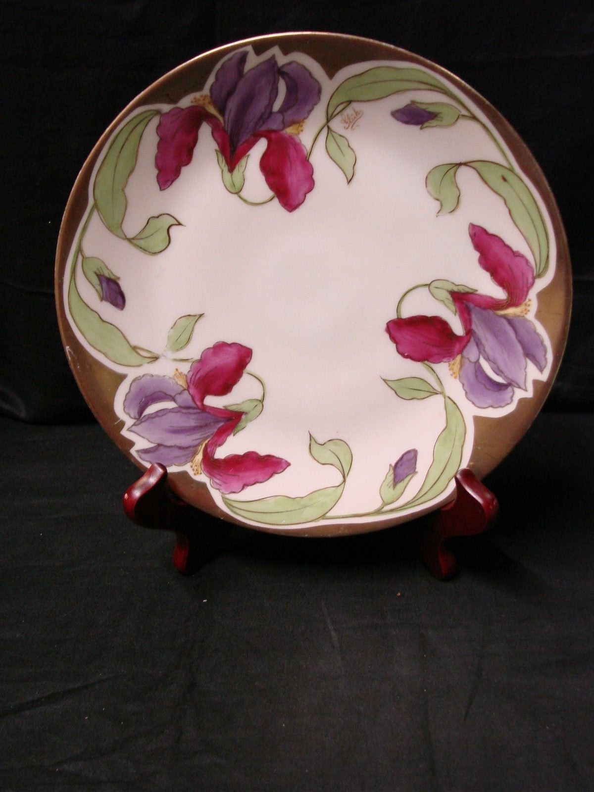 SUPER NICE ROYAL RUDOLSTADTE PRUSSIA CROWN B PLATE - IRIS FLOWERS - SIGNED