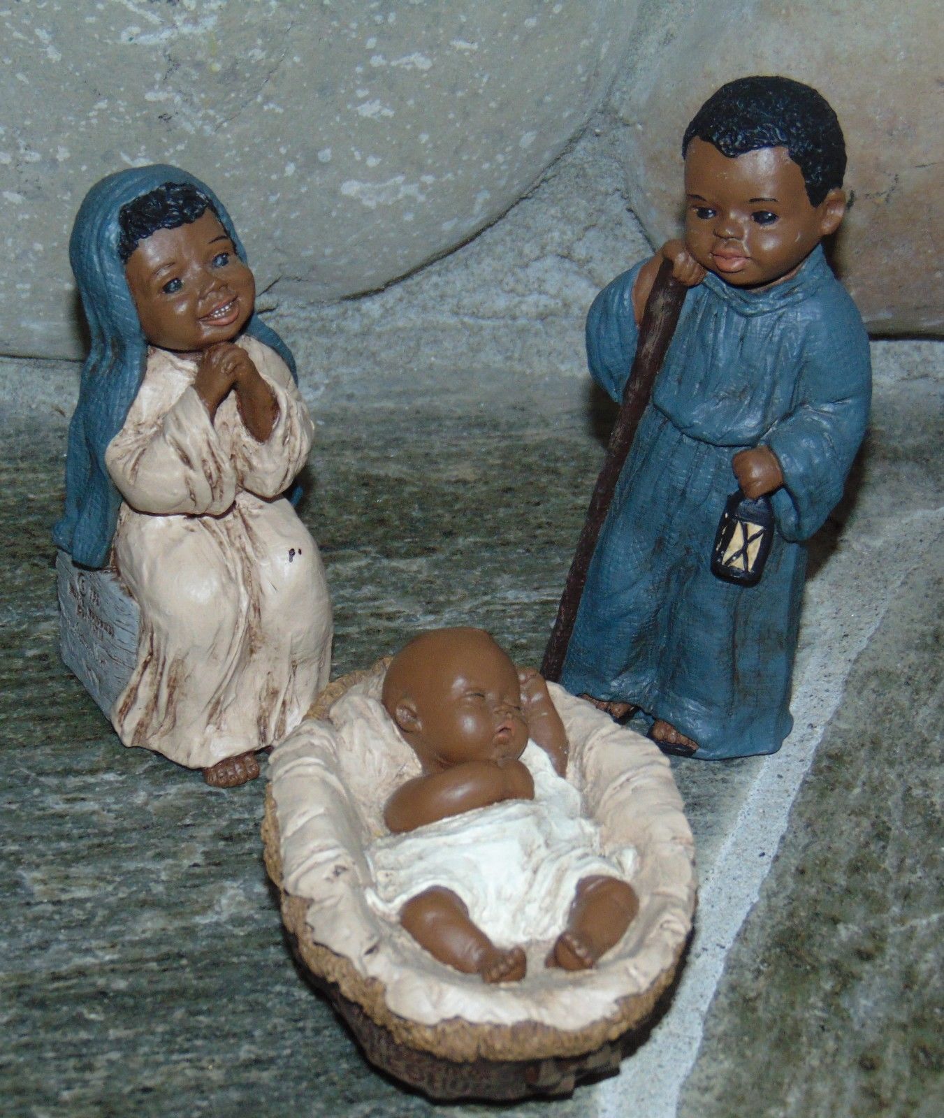 Title (ebay affiliate link): All Gods Children M Holcombe Nativity 3 Pc Mary Joseph Baby - African Amer 1989