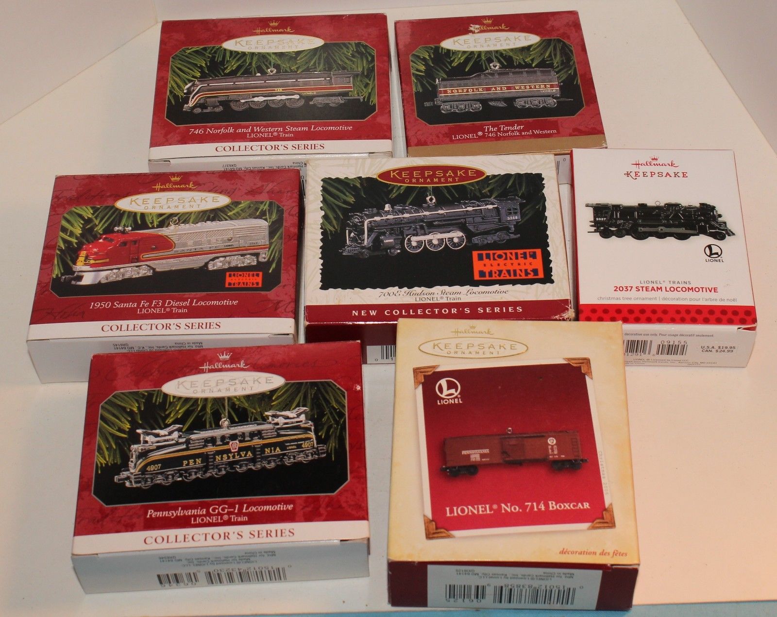 7 Hallmark Keepsake Collectors Ornaments , the Lionel Train Collectors Series