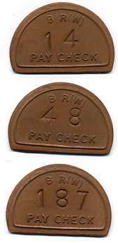 B.R.(W) metal Pay Checks: 3 half-circle, diff nos.