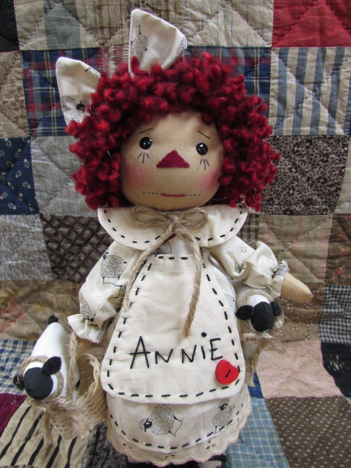 Title (ebay affiliate link): Folk Art Raggedy Ann Doll "Annie had a Little Lamb""