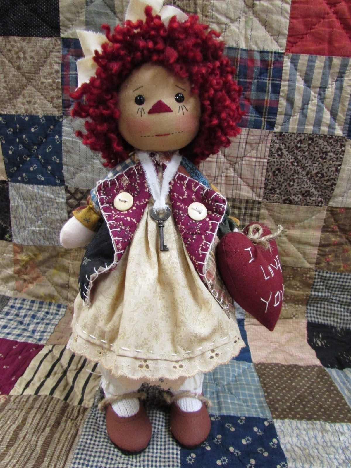 Folk Art Raggedy Ann Doll "I Love You""