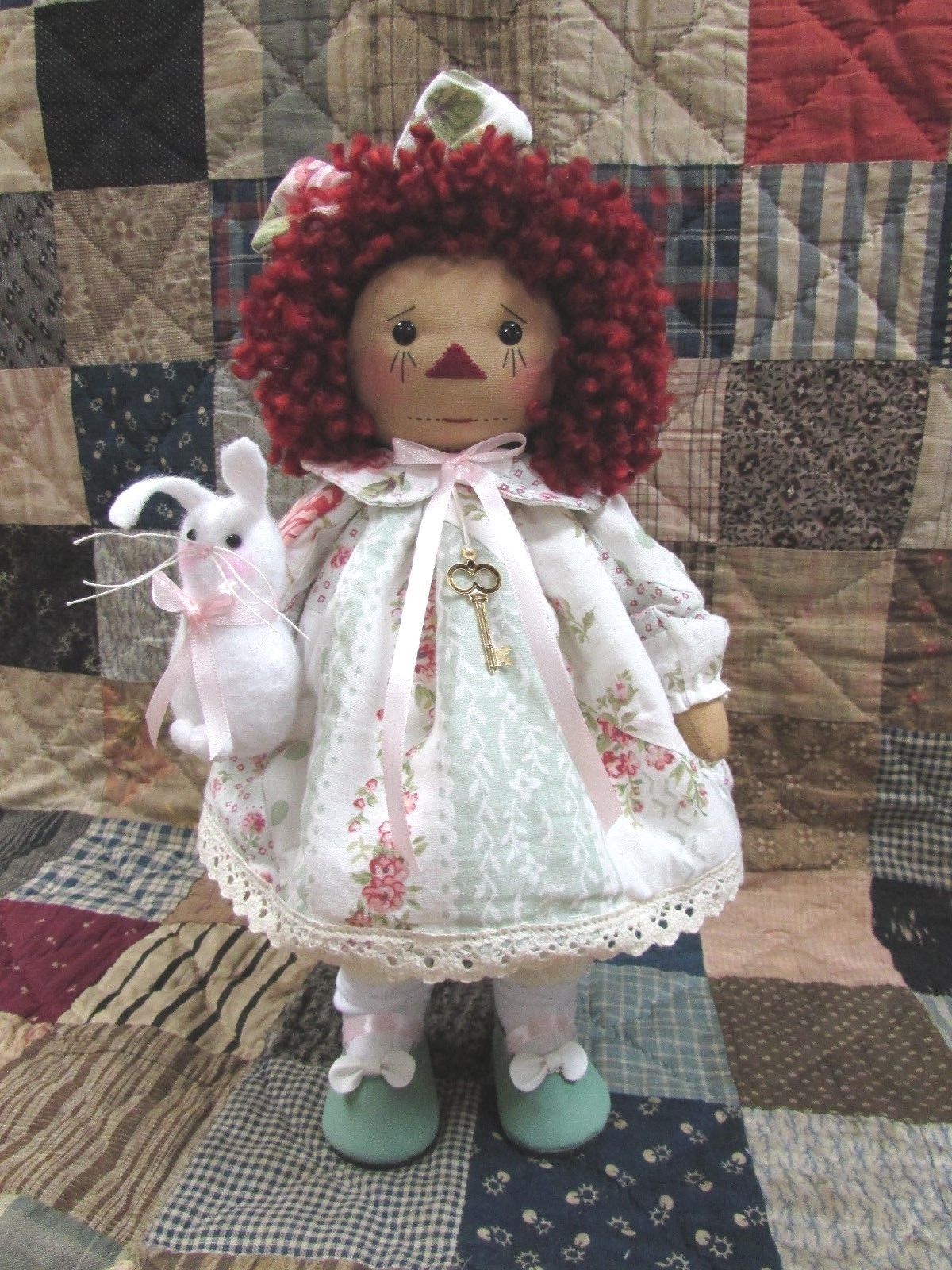 Title (ebay affiliate link): Folk Art Raggedy Ann Doll "Annie and her Bunny"