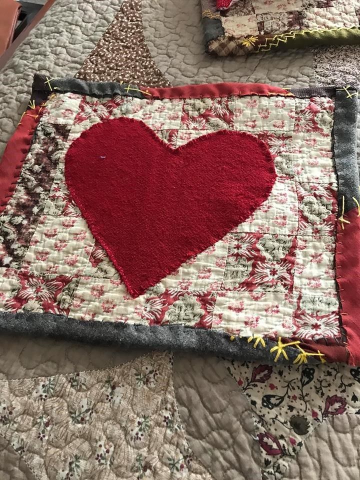 Primitive heart mat made from early goods..linsey woolsie AAFA