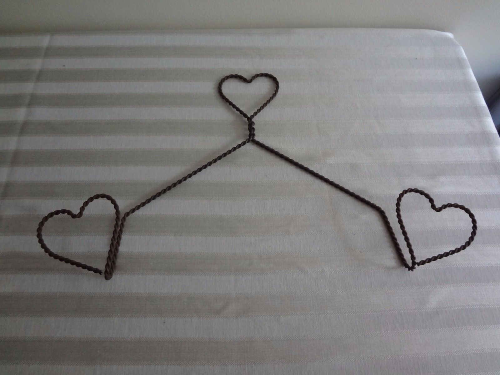 Old Primitive Vintage Hand Made Wire Wireware Rolling Pin Holder Hearts PATINA!
