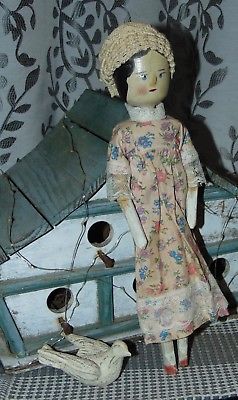 ANTIQUE PRIMITIVE Pegged WOODEN DOLL
