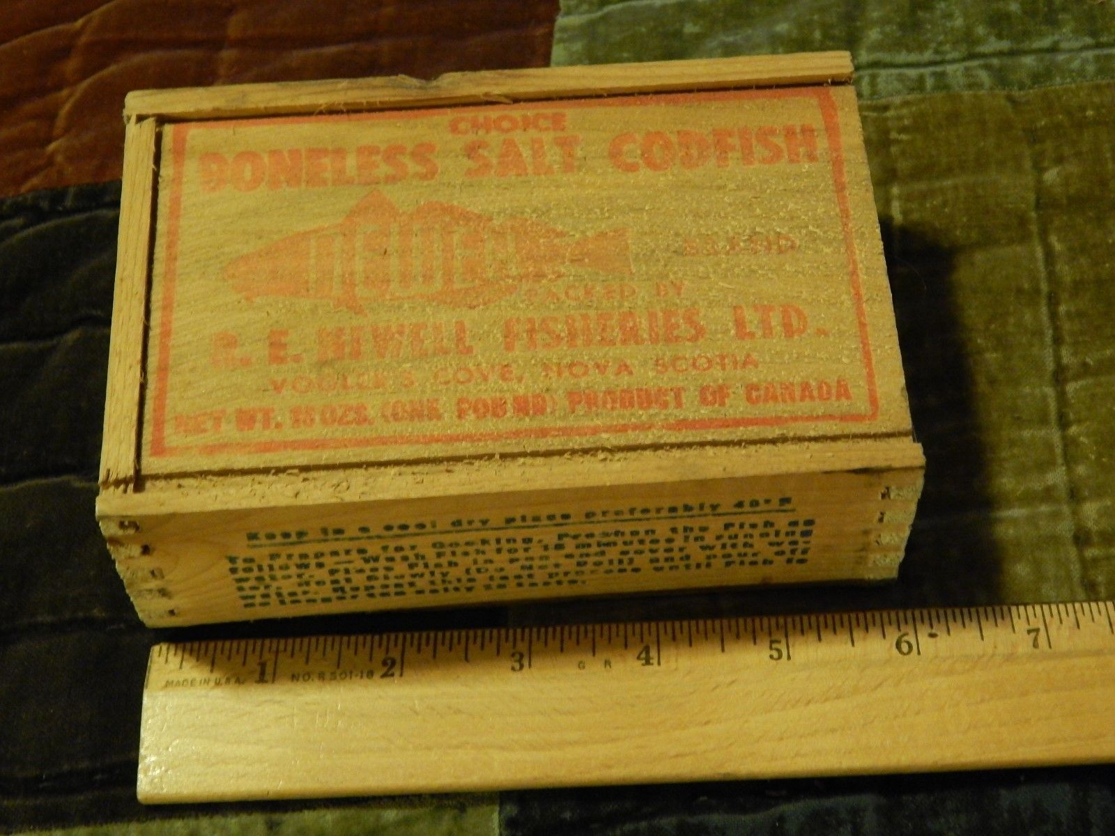 Title (ebay affiliate link): Boneless Salted Codfish ~R.E. Newell Fisheries~ Nova Scotia (Dovetail) WOOD BOX