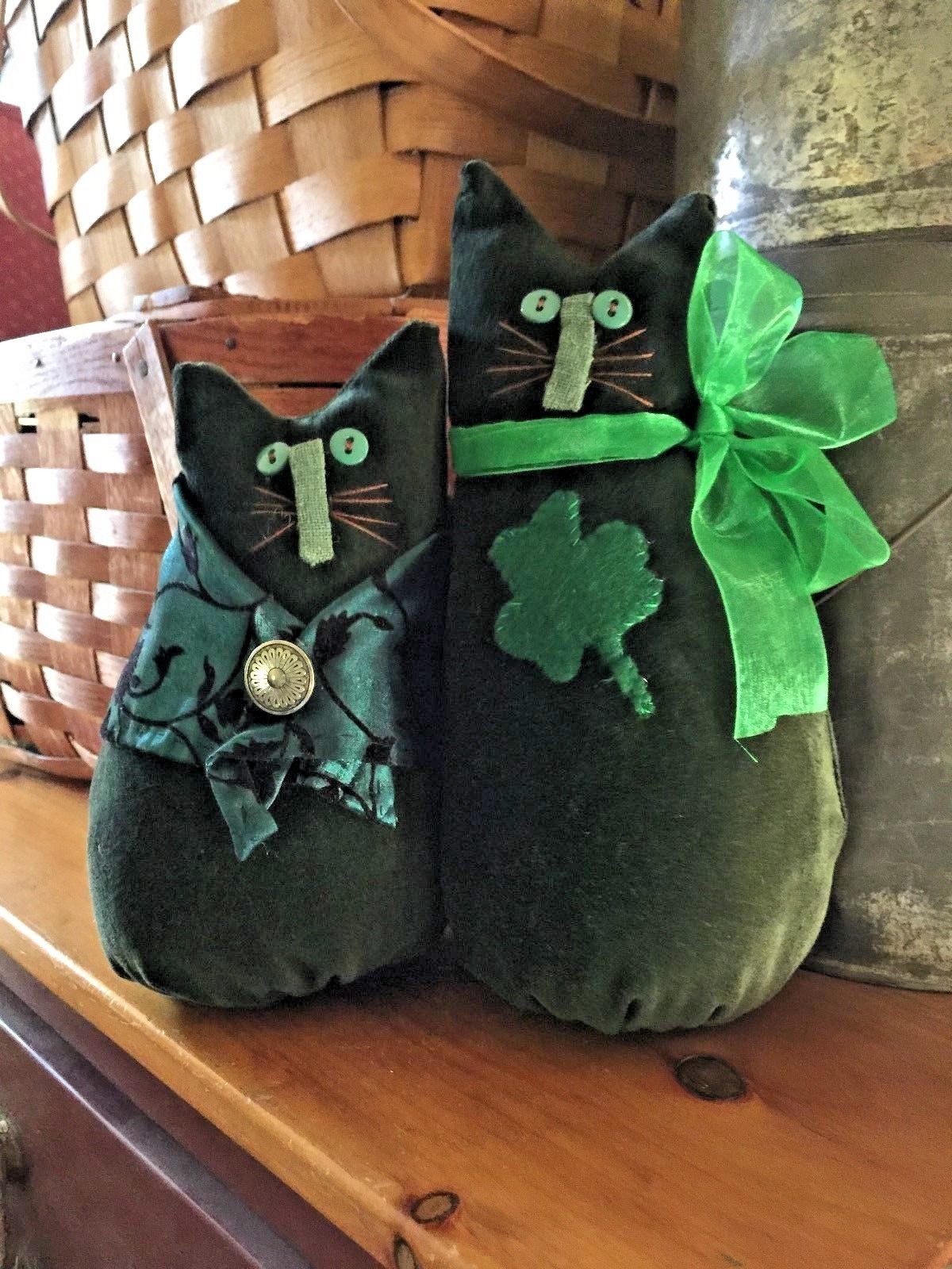 Title (ebay affiliate link): Primitive Stitchery Kitty Cat Shamus and Jana St Patrick''s Day Pair