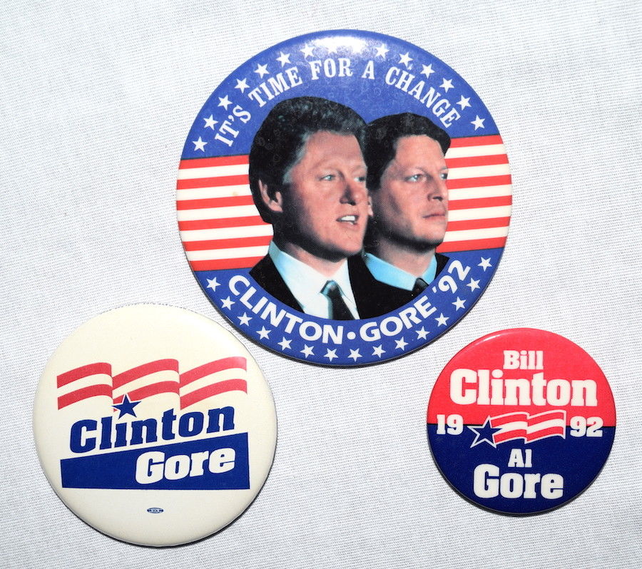 Title (ebay affiliate link): Lot of Three Different 1992 BILL CLINTON AL GORE CAMPAIGN PINBACK BUTTONS