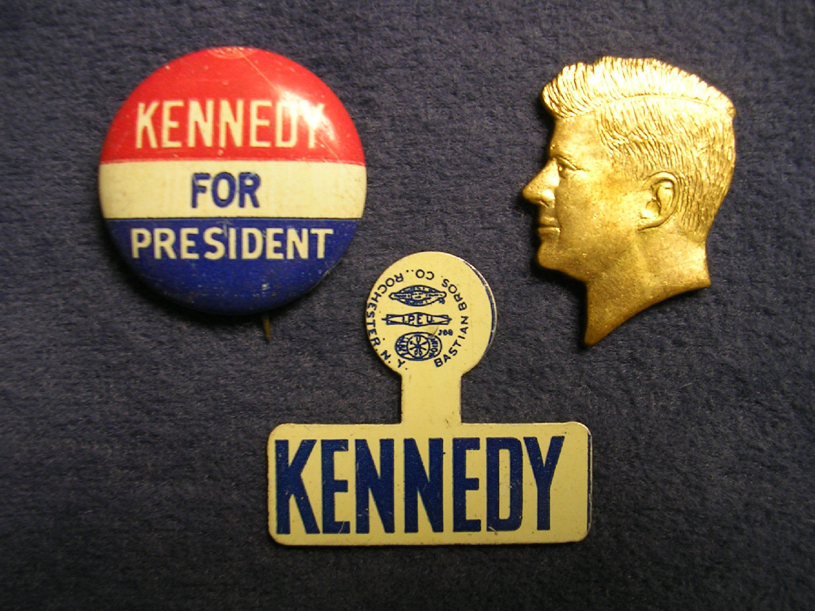 President John F Kennedy 1960 campaign JFK pins button 1964 cut .50 coin head