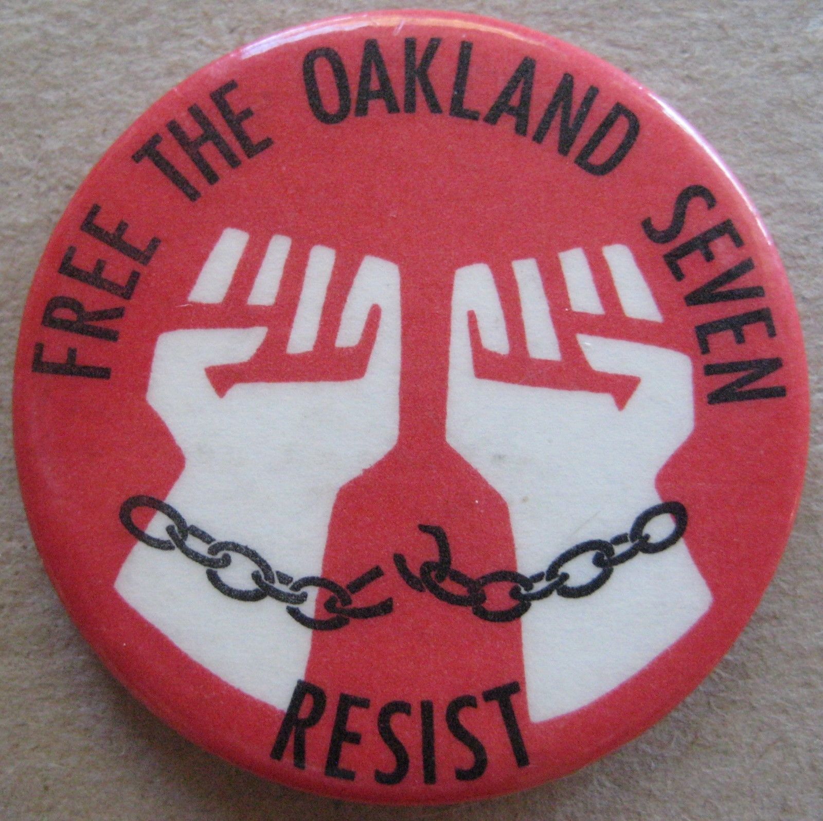 Title (ebay affiliate link): Free the Oakland Seven Anti Draft Vietnam War Peace Protest Pinback Button 1967