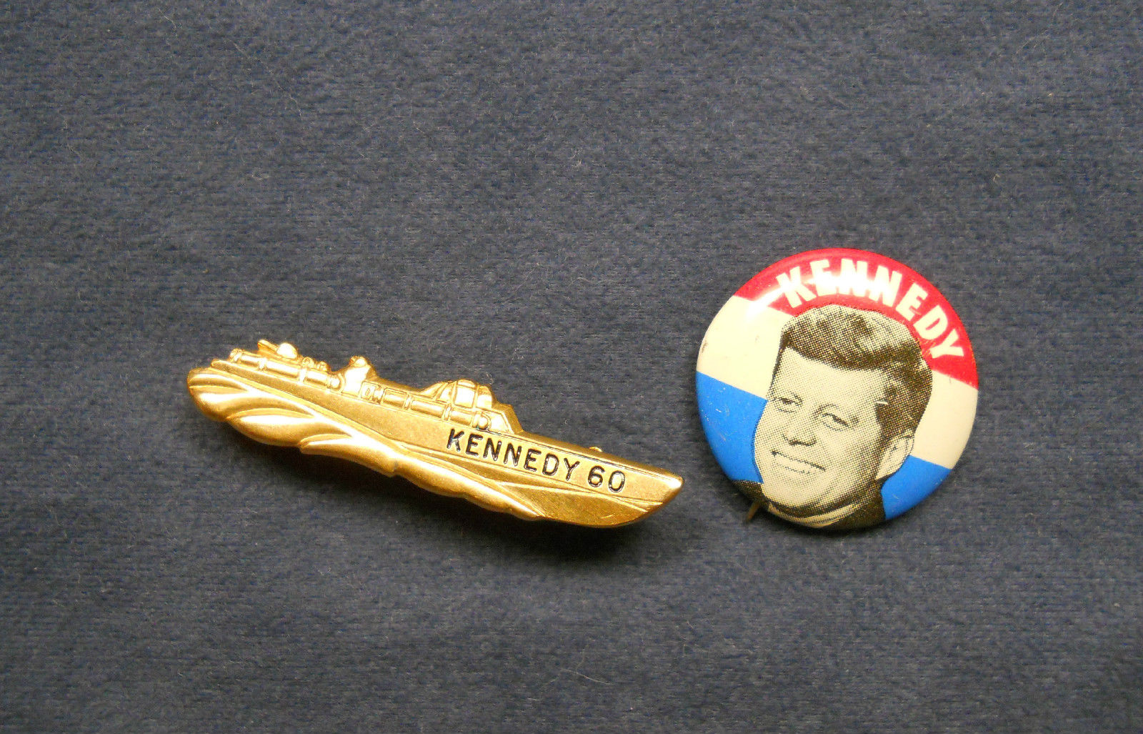 President John F. Kennedy 1960 campaign PT-109 boat pin and button JFK