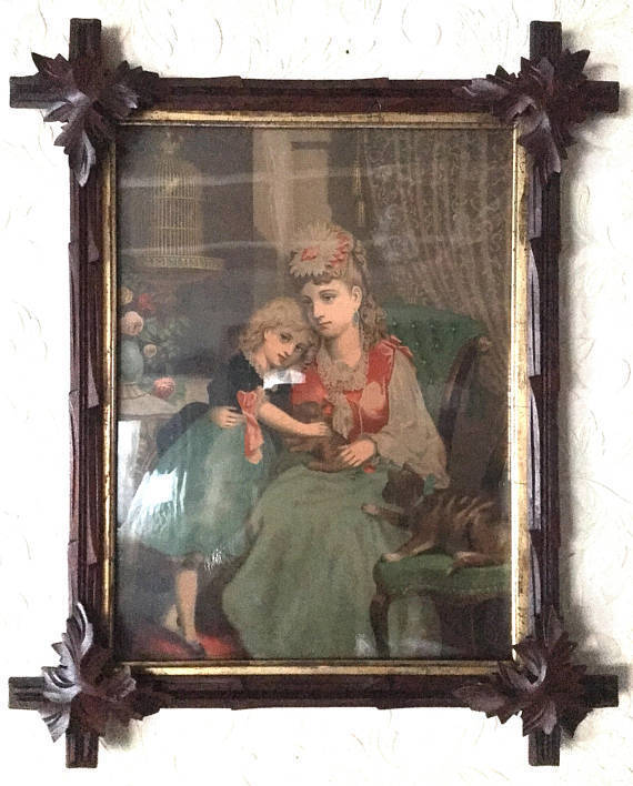 Title (ebay affiliate link): ANTIQUE-1873-CHROMOLITHOGRAPH-JH BUFFORD''S SONS-BLACK FOREST ADIRONDACK FRAME