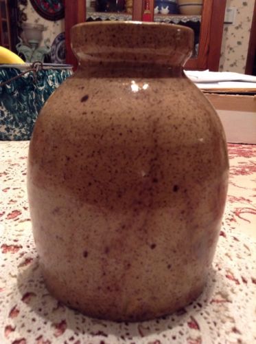 Antique Stoneware Speckled Butter Cream Churn Crock Jar