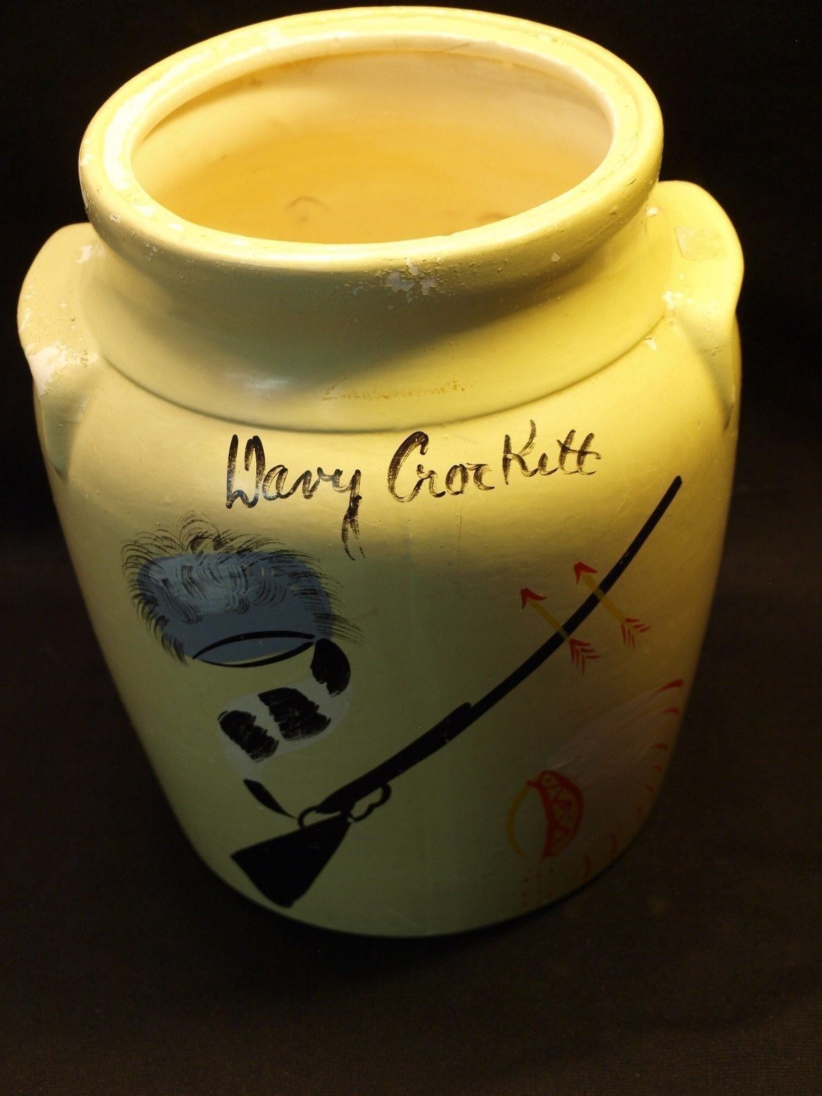 Title (ebay affiliate link): Heavy Antique 9" Ransburg IN USA Davy Crockett Hand Painted Art Pottery Crock