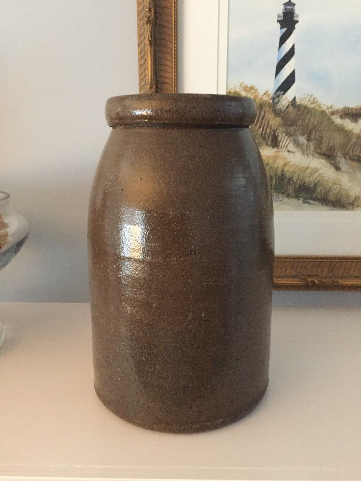 CROCK~REDWARE~BROWN~SALT GLAZE STONEWARE~ANTIQUE