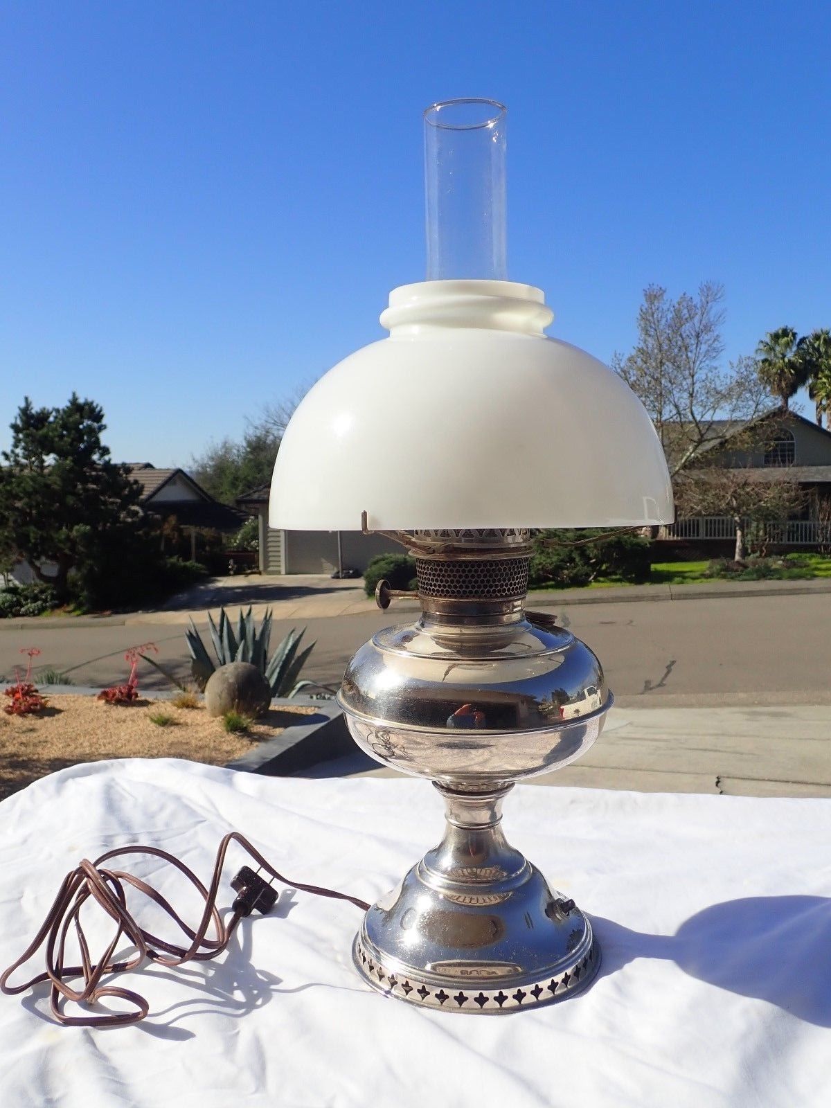 Vintage Rayo Oil Lamp Chrome Converted To Elec Milk Glass Shade Aladdin Oil Lamp