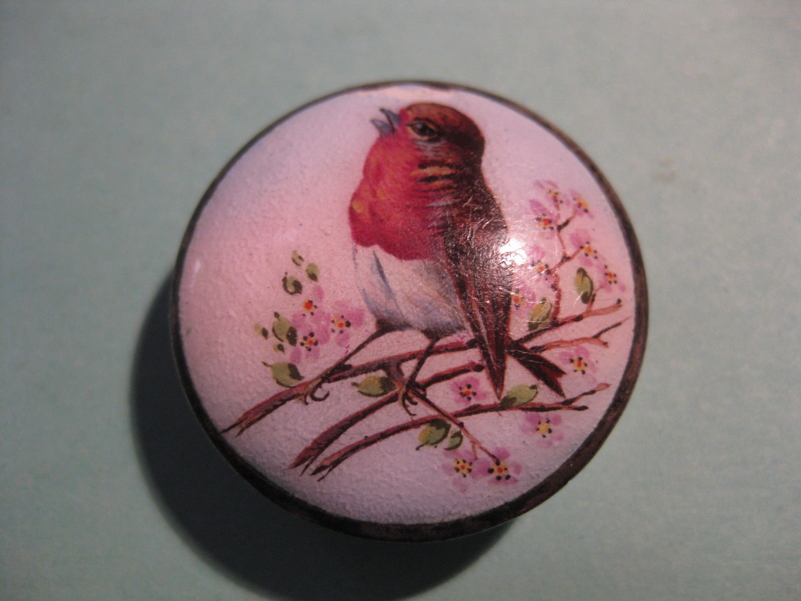 Antique Guilloche Enamel Silver Plated Handpainted JEWELRY PILL BOX Bird Decor