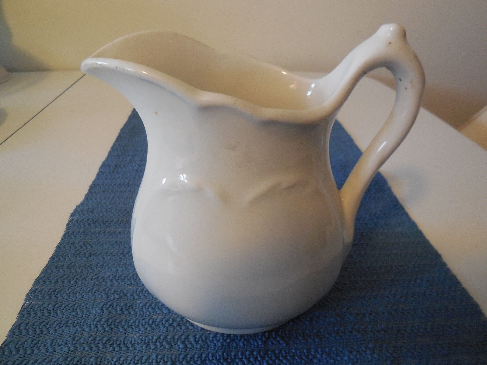 Antique White Ironstone Milk Pitcher, Sterling Co,
