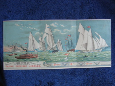 GLOBE BUFFER CO. BEAUTIFUL THREE SECTION. YACHT RACE!