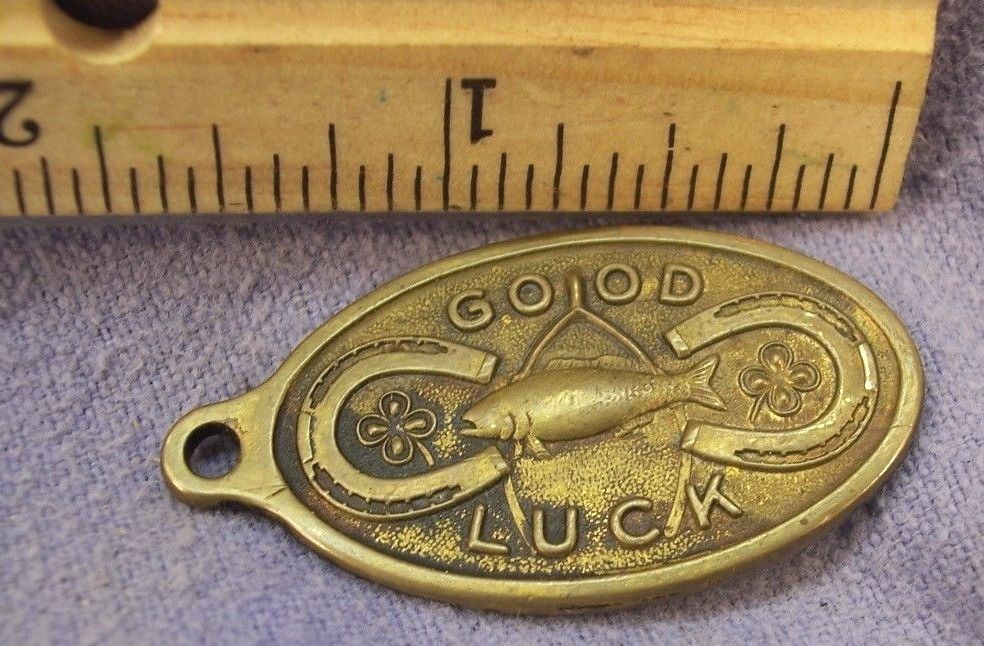 Title (ebay affiliate link): VINTAGE BRASS GOOD LUCK FISHING KEY CHAIN CHARM SHAKESPEARE