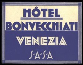 Hotel Bonvecchiati VENEZIA Italy vintage luggage label
