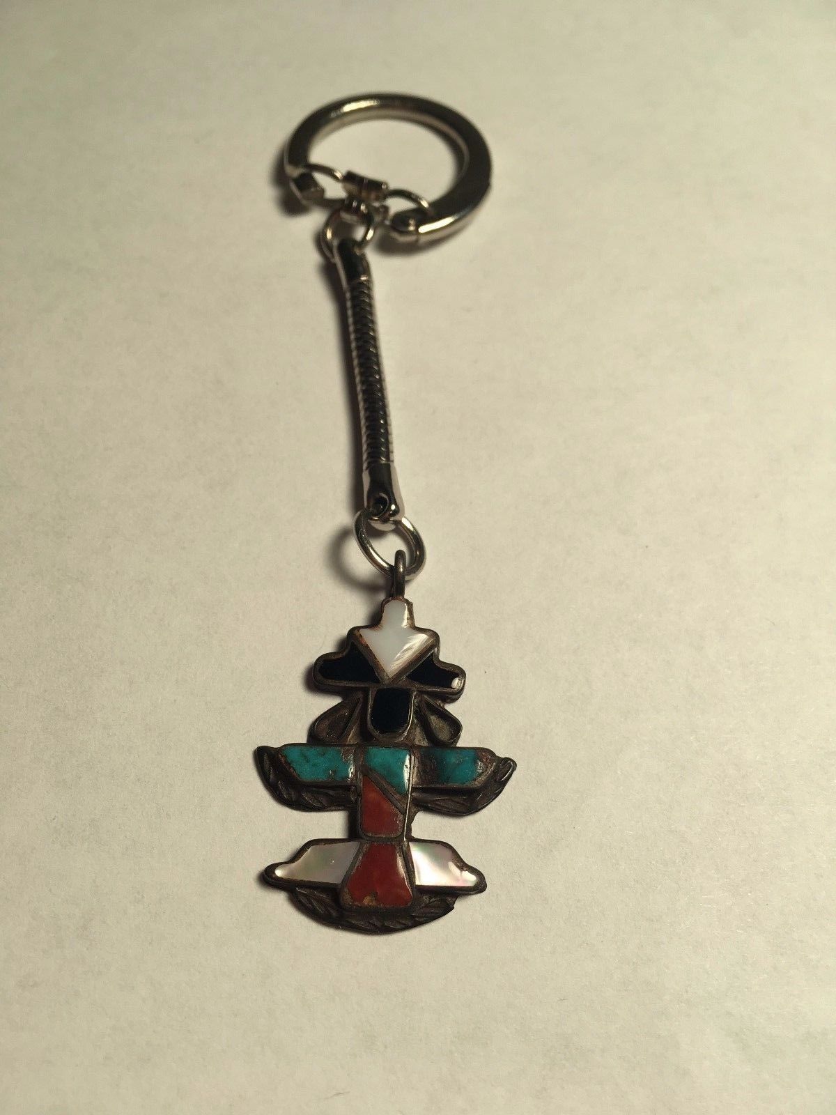 Title (ebay affiliate link): Vintage Estate Metal Key Chain Ring Turquoise White Red and Black Stones