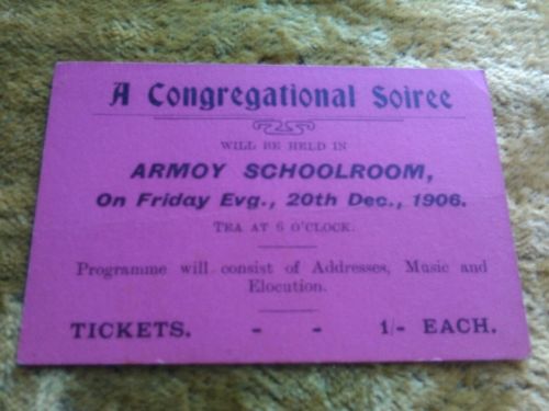 Congregational soiree Presbyterian church vintage TICKET Armoy Ireland co antrim