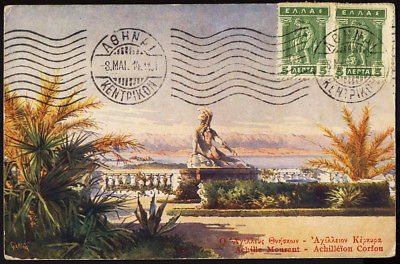 Title (ebay affiliate link): GREECE CORFU KERKYRA old postcard Achilleion Palace Posted 1914
