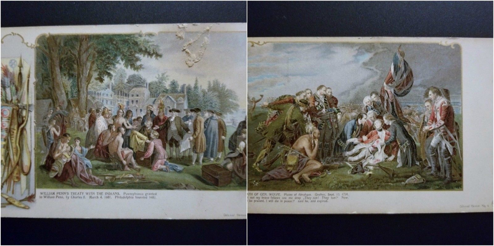 Antique Postcard Colonial Heroes 1 & 4, Death of Gen. Wolfe & William Penn
