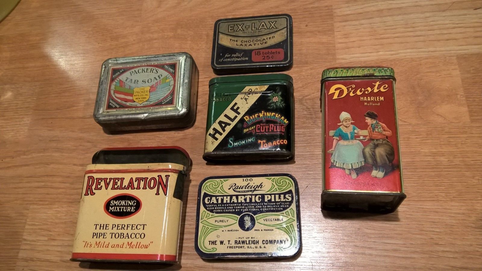 Title (ebay affiliate link): Vintage Tin Containers excellent condition!!! lot of 6, Soap. Tobacco