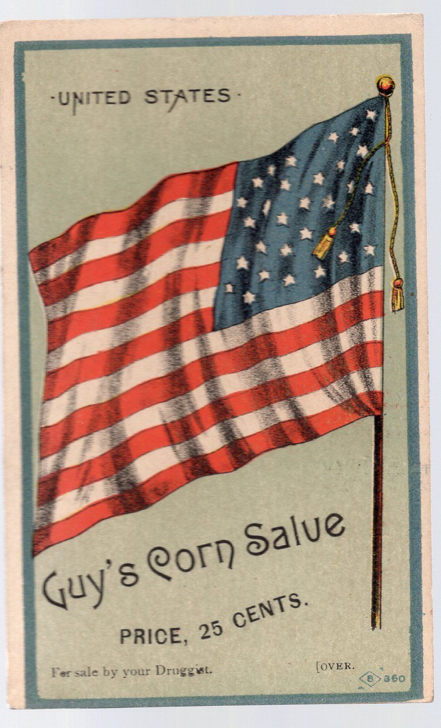 Title (ebay affiliate link): VINTAGE VICTORIAN TRADE CARD. GUY''S CORN SALVE, AMERICAN FLAG