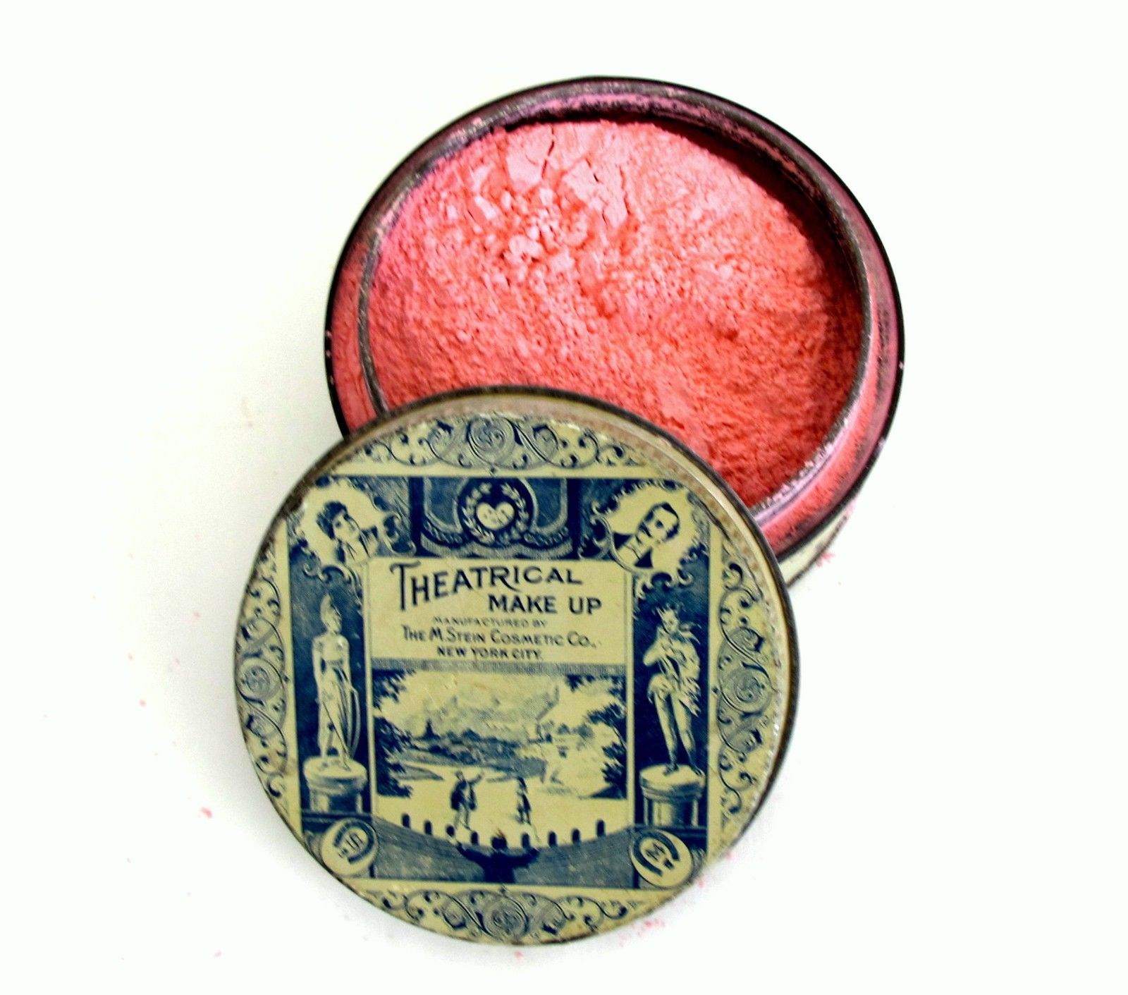 Title (ebay affiliate link): Antique Steins Theatrical Stage Makeup Tin -- Bright Pink Powder