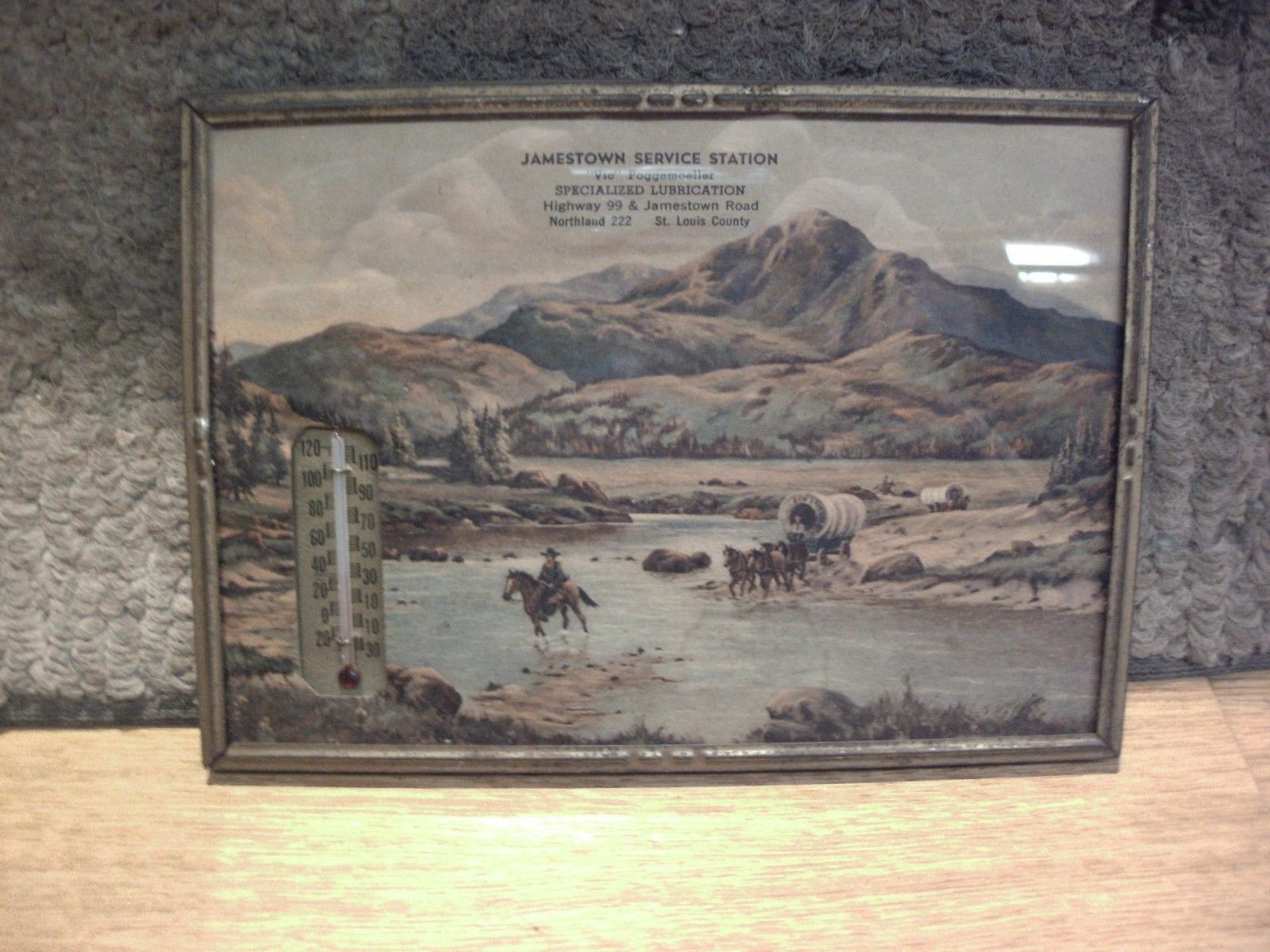 Title (ebay affiliate link): Vintage Framed Advertising Picture With Thermometer and 1947 Calendar, Rat rod
