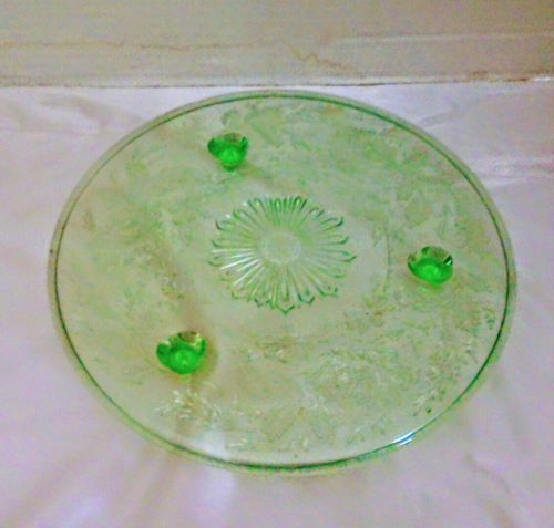 Title (ebay affiliate link): VINTAGE GREEN DEPRESSION GLASS FOOTED CAKE PLATE 10". Dia