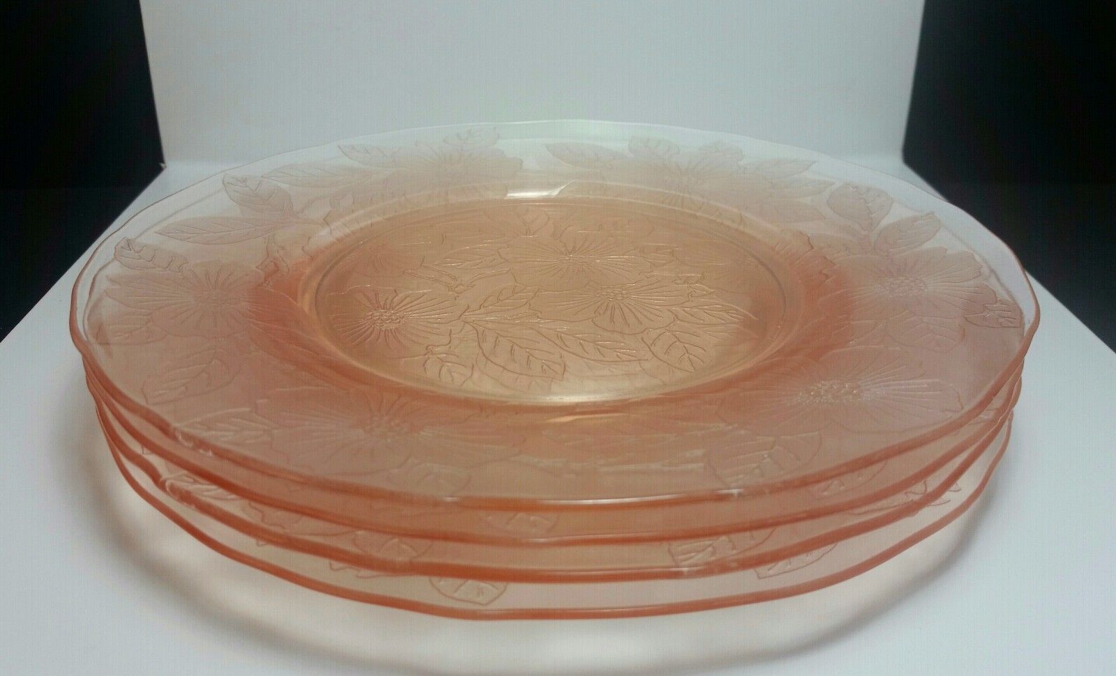 Title (ebay affiliate link): Set Of 4 Macbeth Evans 8" Pink Dogwood Pattern Depression Glass Salad Plates