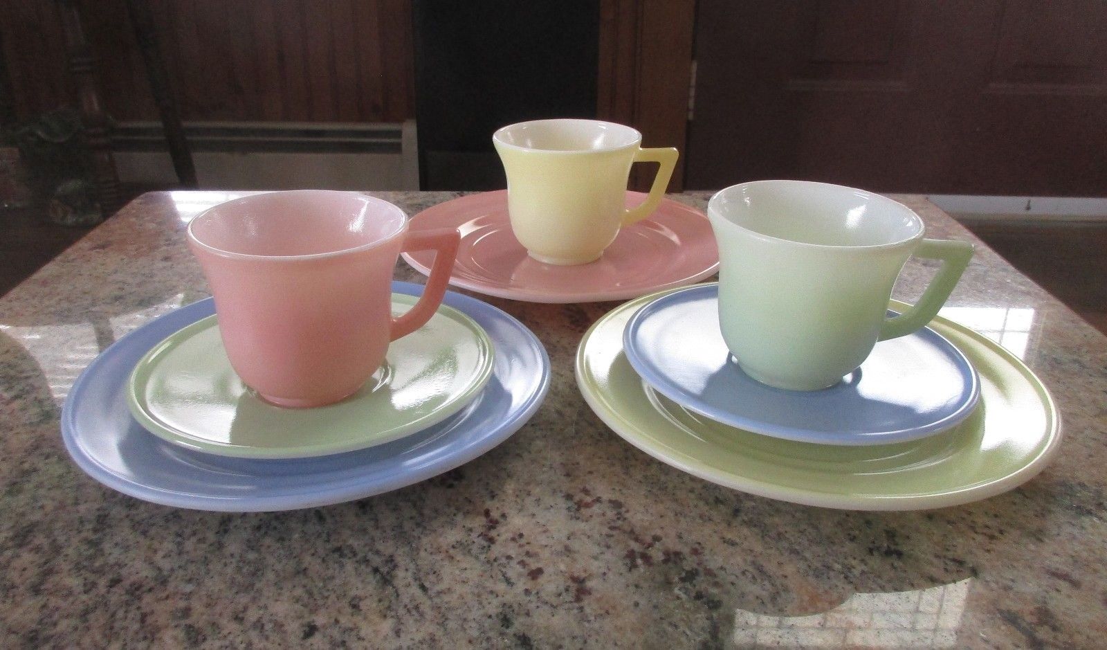 Title (ebay affiliate link): Vintage 8 Pieces Hazel Atlas Moderntone Child Play Cups, Saucers & Plates