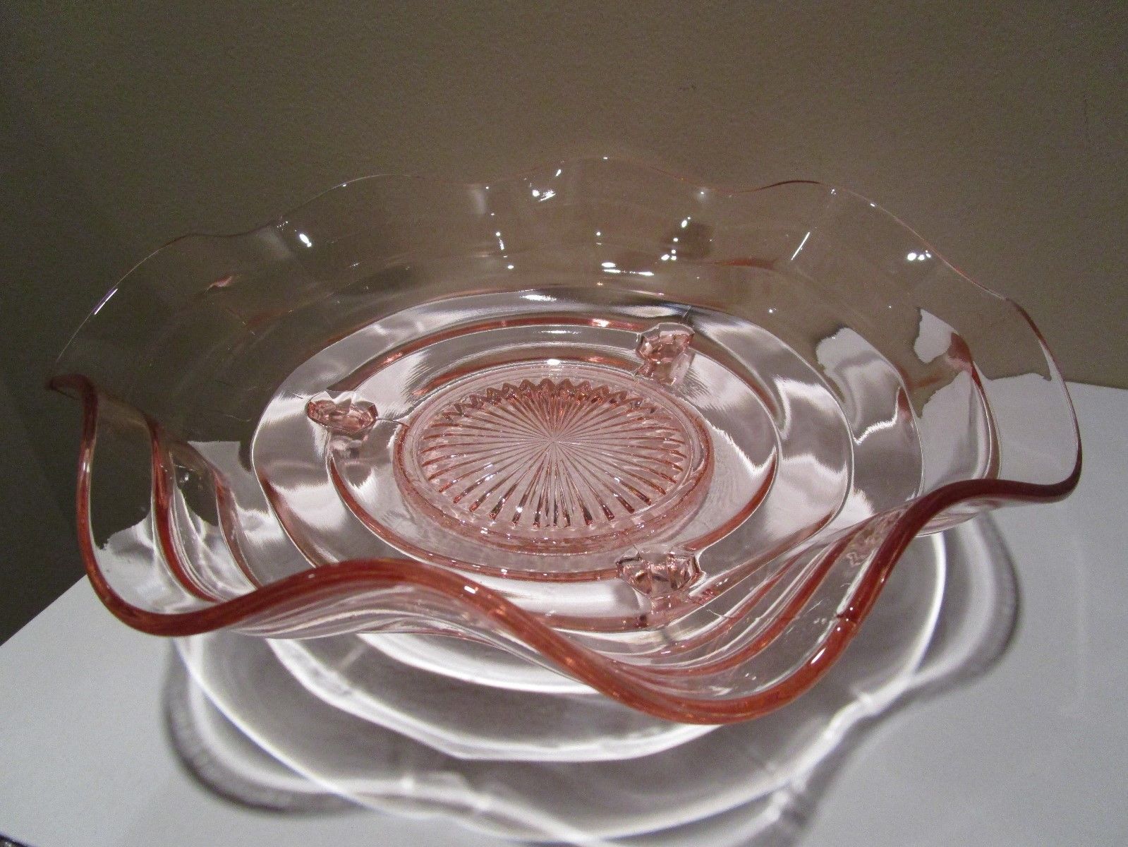 Title (ebay affiliate link): Vintage Pink Depression Glass Footed Fruit Bowl Scalloped Large 10 1/2"