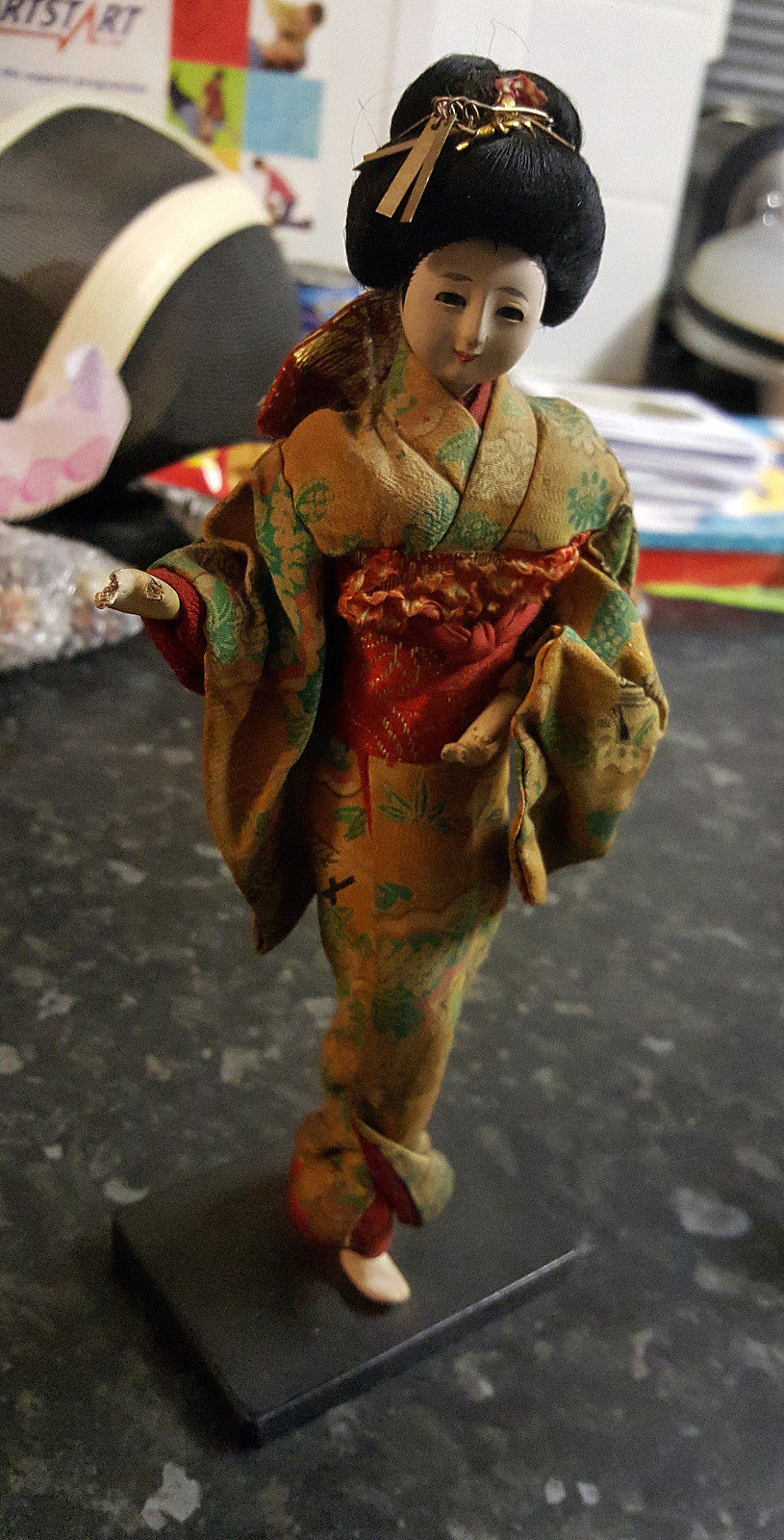 Title (ebay affiliate link): Vintage Porcelain Japanese Geisha Doll With Silk Kimono. 10". See Pics & Descrip