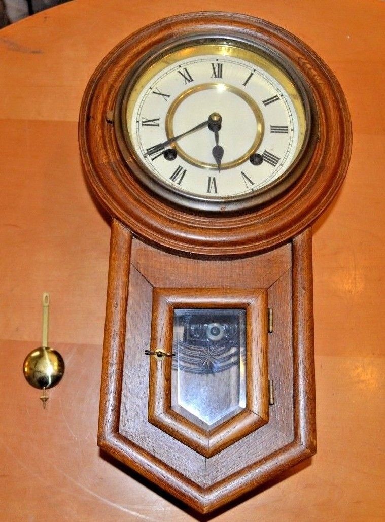 Title (ebay affiliate link): Vintage Oak Case Hanging Wall Clock with Pendulum Working Clock - No Key - NICE